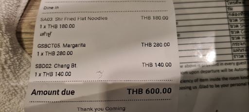 Read moreLiterally the most expensive meal I've had in all of Thailand and it was one of the smallest and kind of bland... waited an hour for food even though we only ordered 1 pad see yew. The food was tasty but finished in about two mouthfuls, and had very minimal flavour. There was heaps of staff running around to serve, and the restaurant was relatively quiet, I'm not sure why it had taken so long? The cocktail took an hour and a half and was literally TERRIBLE (taste, it was half full?, and it was room temperature/tepid). Thought we couldn't go wrong at a hotel restaurant but definitely proved us wrong.