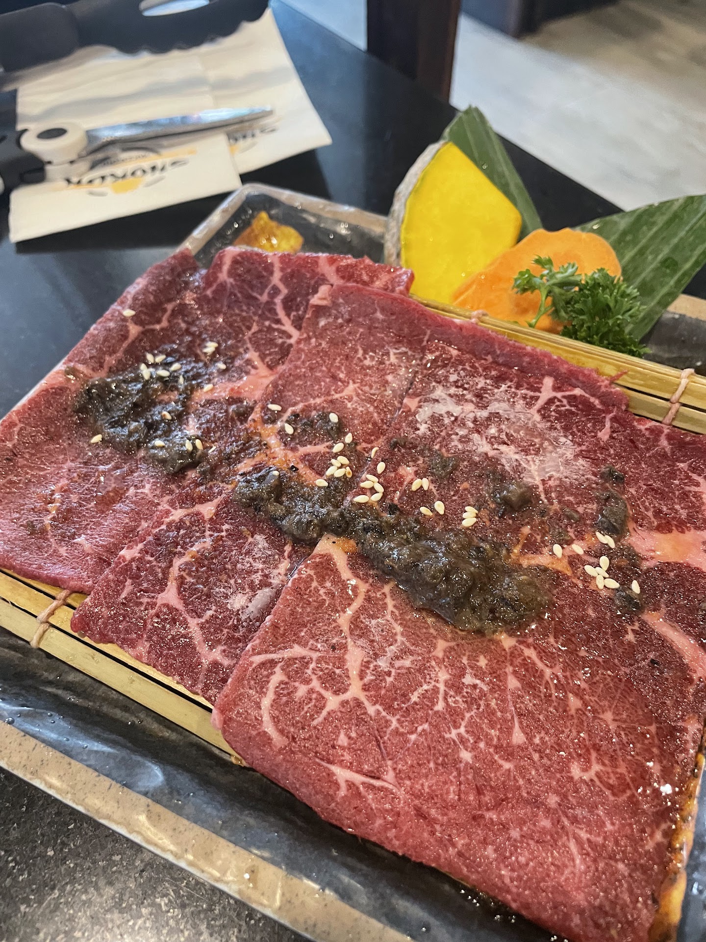 Don't be fooled by the local reviews. 3 of us arrived 7:30 and were told Kitchen closes @8:30pm. The first round of meat didn't arrive until 8pm and we immediately ordered a second and third round, by 8:30 we barely received 2/3 of what we ordered and we were asked to pay for our bill. They told us again kitchen was closed but when we checked on our dishes they said no order for our table was left. Luckily I remembered what was missing and since I insisted not to pay until we receive our order (which is fair for a all-you-can-eat restaurant), they asked me to write down what was missing and the kitchen finished our order. This was by far our most expensive and worst dining experience. Food was okay but wagyu was paper thin (what's the point of having wagyu then?)and you need to order at least 3 serves of everything to make sure everyone...