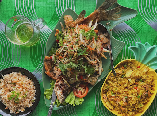Naat is situated along the southeastern coast of Phuket at the very end of Rawai Beach and looks out onto the Andaman Sea. Getting to Naat requires a stroll past a number of other restaurants situated along the strip, all with their own hungry-eyed owners and calls to action. But, I am a loyal patron, and I knew there was only one place I was going to sit. While there is indoor seating, the place to sit is on the covered patio that is literally on on the water edge. As we approached who i can only assume is Mama Naat, she made eye contact and waved. “Long time no see!” A greeting we worked very hard to achieve over the course of our many visits. We were home. Now typically we order our usual. I get the deep fried catfish fried rice with its extremely powerful salty-umami, which I then top generously with chilis from the spice caddy. My partner typically swings between chicken or prawn pad thai with a side of fried spring rolls, which she says tastes “more like pad thai than any other pad thai. Not too dry, and not too saucy. I love the soft tofu pieces.” As always sharing a som tum (thai green papaya salad) for that signature thai blend of umami, sweet, spicy, and fresh crunch, is a must. This setup usually runs us around 250 THB not including tip, and fills our bellies nicely.
