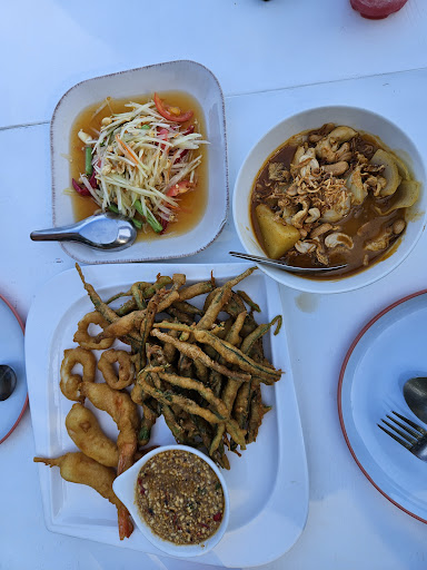 Read moreBrilliant Som-Tam, beautiful view, cold beer. What else would you want? If you need luxury go elsewhere, but if you want Thailand this is the place to go. The fried morning glory plate is super delicious and huge portion. The watermelon shake was amazing too. Love the friendly people. Service could be a bit more attentive, but that's ok. The curries were ok, but not great, thus one star down...