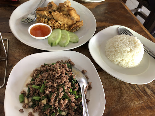 My meals came very fast; Thai Green Curry Chicken 🍲 was amazingly authentic and flavourful, the thick curry very coconuty 🥥👍🏻 served wt piping hot steamed white rice 🍚 TB120. Yumm! 😋 Even the Stir Fried mixed veggie 🥦🌽🫑🍄 were very Fresh, Crunchy and Colourful, TB100! I couldn't resist the Thai iced tea🥤 TB60, wt less sugar and ice on a cooling day, 28°C.🌦️ Overall, a Must try in this cafe IF you're in Rawai, Mueang area. Clean atmosphere and toilet 🚽🧻 served wt friendly, interactive Chefs that peeked out to see the...
