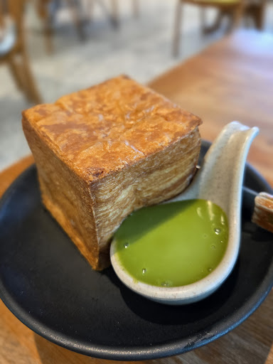 For dessert we couldn't skip their recommended cube croissant that looked so good in the counter - they warmed it up and served it with a green pandan coconut sauce. No doubt the the moment you pour the sauce over the croissant is so instagrammable which makes a lot of sense for why this is their signature pastry, but the great quality of pastry & its taste justified that this is not just a beautiful moment, but also a delicious bite.