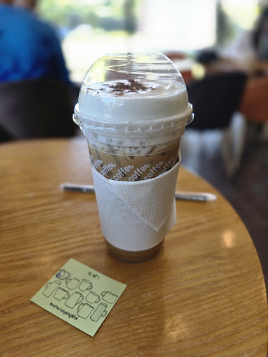 สถานที่พอนั่งได้ แต่ช่วงเที่ยงวันทำงานคนจะเยอะ กาแฟรสชาดพอได้...