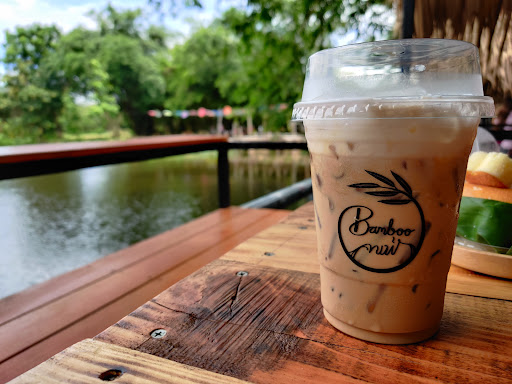 ด้านบรรยากาศ ร่มรื่น ป่าไผ่ล้อมรอบบ่อน้ำ มีน้ำพุกลางน้ำ มีการให้อาหารปลา มีซุ้มทานอาหารริมบ่อน้ำ แล้วก็แคร่ใต้ร่มไผ่ มีเปลผูกใต้ต้นไผ่ให้นอนเล่น ให้อารมแบบมานั่งทานอาหารริมน้ำตก ลมพัดเย็นสบาย เสียงน้ำพุให้รู้สึกผ่อนคลายคล้ายเสียงน้ำตก มีมุมถ่ายรูปให้เลือกถ่ายเยอะ