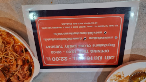 I gave a 5 star, but I do have some negative comments. First the good. The food is good and not expensive. All homemade and you can feel it. The pasta dishes are HUGE and thats a problem and they DO NOT LET YOU TAKE LEFTOVERS HOME. I'm sorry, but that's the basic on restaurant service. My mom told me not to waste food, but you force me to throw away great food WHICH I PAID FOR. They make it a point by putting signs all over the place that they don't allow it. Come on, if it's the money, I'll be happy to pay extra 50 baht, but let me take my food back...