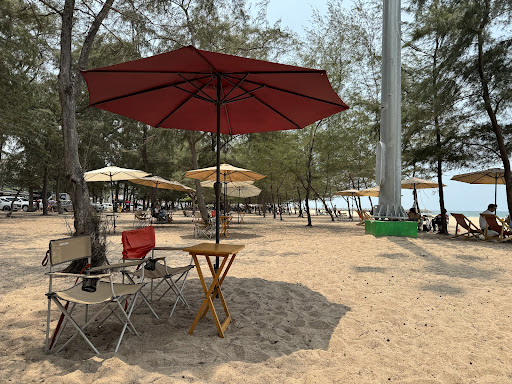 -บรรยากาศopen air(ใครสายห้องแอร์อาจจะไม่ชอบ) -ตัวร้านขายเครื่องดื่มและของกินเล่น ส่วนที่นั่งจะเป็นเก้าอี้+โต๊ะปิกนิกใต้ร่มตามแนวหาด มีลมทะเลพัดเรื่อยๆ ไปตอนกลางวันไม่ถึงขั้นร้อนมาก(แต่มาช่วงเช้า/เย็นจะดีกว่า) -มีจุดถ่ายรูปเล็กๆน่ารักๆที่ทางร้านจัดไว้ให้ -สั่งน้ำแล้วจะได้เครื่องเรียกคิวมา ไม่ต้องยืนรอตรงจุดสั่งน้ำ