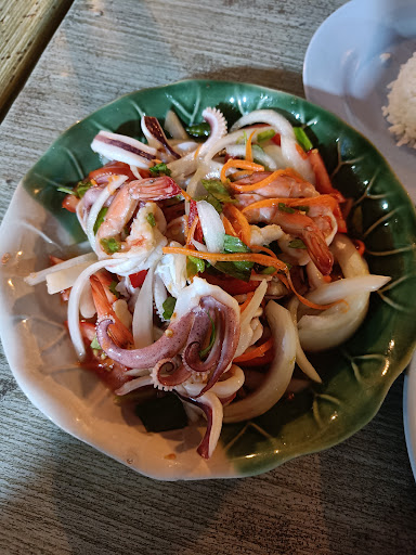 This is one of the best seafood places I have been to in Ban Phe. We went there on a regular evening, so it was almost empty. We had a perfect place with a beautiful view over the sea with the lights of the fishing boats. The restaurant serves all kinds of seafood, but also chicken and pork. We chose the spicy seafood salad, fish soup, fried rice with seafood and with chicken for the kids, and some additional vegetables. The food came quickly and everything was prepared perfectly well. It was one of the best seafood salads I had so far. I will definitely visit that...
