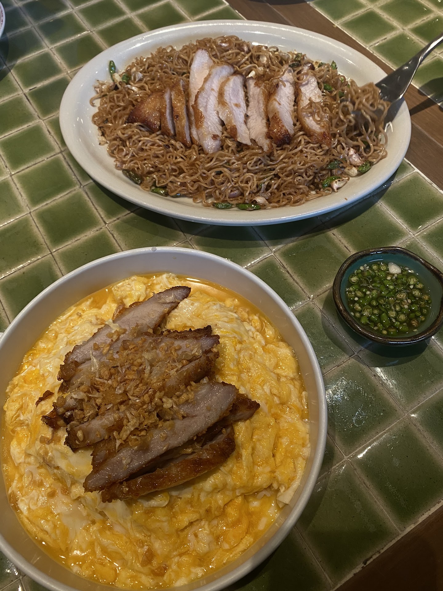 Ordered their specialty eggy rice with basil chilli and crab, alongside the instant noodle dish with pork - and both were amazing!