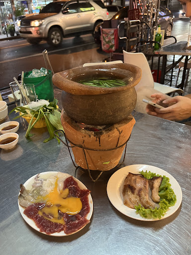 Read moreLast time we were here for Jeh O Chula and passed by this hotpot place with all tables being occupied, so we just came back again and have a try! This is my first time ever to try this thai style hotpot called chim chum and it was sooo great! The soup base was boiled with many spices which turns out tasted like tom yum in a less sour and spicy version! We had the beef and seafood combo for hotpot and also the grilled pork neck recommended by the friendly staff, everything was fresh but just the portion is a bit poor, i think it just good enough for one person serving.. other than that eating this traditional thai hotpot with chilling beer next to the street is just satisfying!