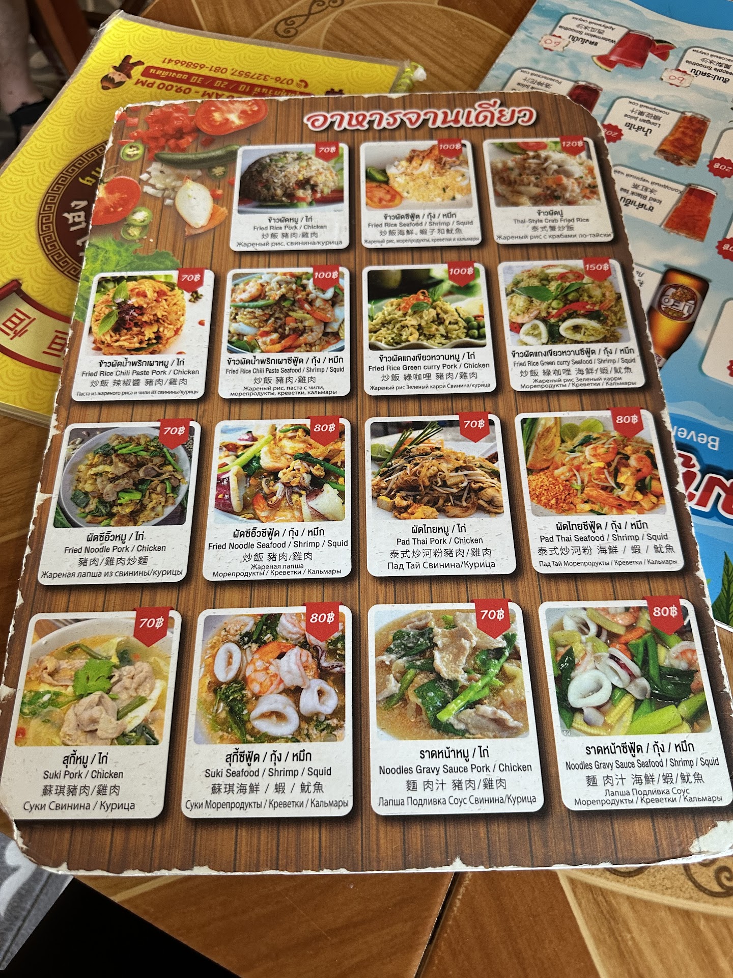 The Tom Kha Gai (coconut soup with chicken) was really good, the best I had in Thailand actually, and a huge portion. You could share it between two persons if you'd get two rice with it. With one rice and ice tea it...