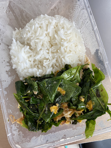 The kitchen is not clean. They really need to improve the cleanliness. Look at the towel, do the workers not wash their hands properly if the towel is so dirty? I wouldn’t dare to eat a salad here, only cooked food. Regarding the food, first I tried a simple dish, and it was nothing special: a burnt egg and a lot of oil. However, it was cheap, just 100 baht including Thai tea.