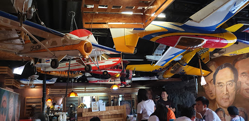 We ordered the pork steak, chips (French fries) and vegetables on the recommendation of a YouTube user. It was tasty good food, served within a short time by polite staff. The live music was pleasing on the ear and importantly so, not too loud that one had to shout across the table. The venue is decorated with model aeroplanes, suspended from the ceiling and the walls have paintings of the late king of Thailand. Best to use your GPS to locate this restaurant, it really hasn't much of a business like frontage. We have since returned for more. The quality and taste of the food remains excellent and the prices unchanged. Main course price THB 69.00. Do yourself a favour and go there for lunch,...