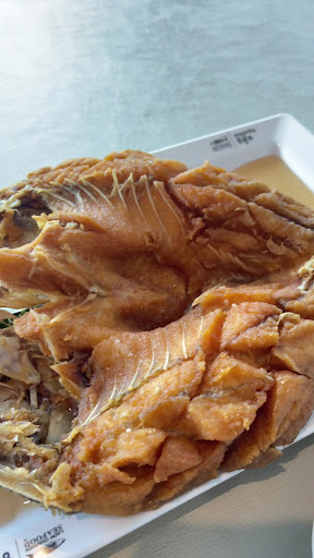 แถมรอบนี้ปลากรอบนอกมาก ด้านในนุ่มฟู เนื้อปลายังชุ่มน้ำอยู่ ต้องรีบกินตอนกำลังร้อนๆ ถ้าเย็นแล้วส่วนเนื้อปลาจะแห้งลง แต่ส่วนอื่นยังกรอบอยู่ แต่แค่จะไม่ได้ความฉ่ำน้ำในเนื้อปลาแบ้ว น้ำจิ้มหอมสดชื่นเหมือนพึ่งปั่นใหม่ (น้ำปลาราดติดหวานตามสไตล์ ส่วนตัวถ้าลดหวานได้หน่อยก็จะดีมากๆ)