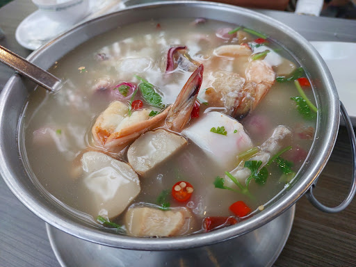 Now, let's talk about the food. The tomyum soup was tasty, though a tad salty, but no biggie. It came with four big prawns that were creamy and savory—perfect for prawn lovers! The pork neck shoulder was the star of the show—so juicy and tender, with just the right amount of marinade. Paired with basil and chili, it was a flavor explosion!