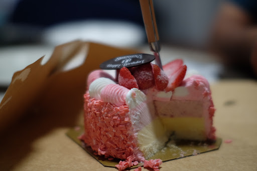 Read moreพนักงานบริการดีมาก ยิ้มแย้ม น่ารัก จัดเค้กใส่กล่อง (น่าน้องใหม่กำลังเรียนรู้งาน ) ใส่น้ำแข็งแห้งมาในกล่อง พร้อมเทียน และ แปะhappy birthday เรียบร้อย มีบัตรสมาชิกชิ้นนี้จ่าย 399 เทียบกับหัวหมูคาราเมลล /ยุ่นาน น้องบอกว่า🍓ขายดีสุดเหลือ2ก้อนๆละ1.5ปอนด์ เป่าเทียน อวยพร ถึงตอนตัด คือแข็ง มาก หั่นยาก วางบนจานละลายไวยุ่...