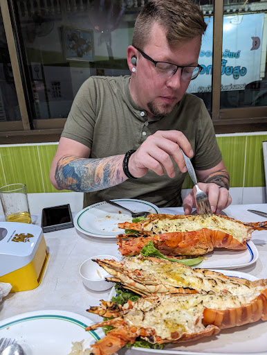 Lobsters - got two medium lobsters for 1500 baht. It's a lot of food. Takes a while to grill. I wish I had gotten it stir fried instead of grilled. It was good, but the lobster needs butter or some kind of sauce to...