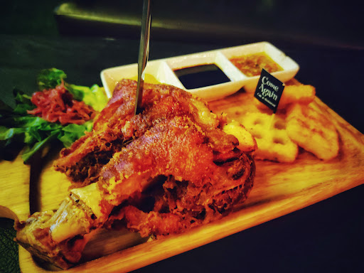 หลังจากเลือกโต๊ะนั่งแล้ว น้องพนักงานเสิร์ฟรับช่วงต่อแนะนำเมนูเด็ดของร้านหลายรายการ เลือกสั่งเป็น "ขาหมูเยอรมัน" "ต้มซุปเปอร์ขาไก่และยำหอยแครง" อาหารร้านนี้ถ้าเป็นแนวอาหารไทยพวกต้มยำ หรือยำ ใครไม่กินเผ็ชให้แจ้งพนง.ไว้เลย เพราะความเผ็ชนั้น จัดจ้านจนถึงกับซี๊ดดดดไม่หยุด!! ปริมาณและความอร่อยถือว่าใช้ได้ ในส่วนของเครื่องดื่มมีให้เลือกหลากหลาย น่าจะถูกใจหลายๆ คน ช่วงดึกๆ หน่อย จะมีดนตรีมาเล่นให้ฟังเพลินๆ