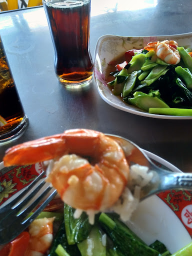 Editied for September, 2019: I just a paid another visit. This is the best seafood in greater Bangkok. Anytime you can stuff yourself with fresh, off the dock seafood for $8 is a giflt from the food goods. Get out of Central Bangkok and try this place. Be adventerous. As for me, I live closer this year so it will be my go to place. Taking a stroll on the nearby River Esplanade is cool too! Orirignal review follows! Awesome! A total local place right near the PakNam BTS. The staff was friendly, although very little English is spoken. It is total Thai: outdoor seating, outdoor fish storage on ice, toilet paper for napkins, dogs wandering around but the food is fabulous. If you, like me, want to eat with the locals, this is a place for you. You will be the focus of attention because not a lot of foreigners go here. You will be even more approved of if you, like me, can handle hot food and Thai style dishes. I had Kale with Shrimp and Oyster Sauce and it was wonderful, the shrimp were plump, juicy and sweet...and the Kale was done perfectly. Add a little Prik Nampla to heat it up. I also had a grilled Sea Bass which was attractively presented whole garnished with some fried garlic and ginger strips. Take a hunk of fish, a little rice, a little garlic and some ginger and put some fresh made spicy green dipping sauce on it and it was Michelin quality! Total Bomb! This place will warrant a repeat, I would ride the train down to Pak Nam just to go here. The staff was friendly and helpful, and paid a lot of attention to me because I was a foreigner and they were really happy I enjoyed the meal. If you are a guy by yourself, they will try to fix you up with the cook. Another cook kept telling me that she loves me. The owner is the one who speaks broken English and he is a real nice guy, his wife or sister is the head cook and she can slay it. I had a great time, and great food. Don't expect ambiance, but the prices reflect it: my bill was 290 Baht with two cokes (it was hot out). Thats under $9. Total bargain for what I consider world class food! Just head right down past the 7-11 on the East side of the station, 100 meters or so, look for the yellow chairs on the corner. The menu is extensive and they do have an English version, but no pictures, so you pick on the English menu and the owner counts down to where it is and matches up with the Thai menu. For more pics visit my Instagram...