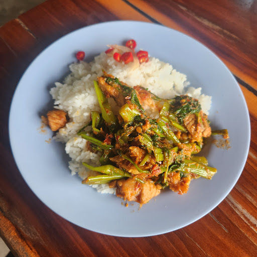 🍜 ตัวอย่างกับข้าว เช่น แกงเทโพหมู ปลาทู ผัดเผ็ดปลาดุกซึ่งมีหลายแบบ ไข่ลูกเขย ผัดกะเพราหมู คั่วกลิ้งหมู ผัดบวบใส่ไข่ เป็นต้น