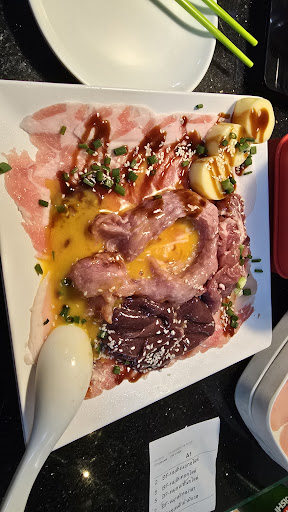 เป็นร้านเฝอลุงโฮเก่า ตอนนี้เปลี่ยนเป็นร้านใหม่แล้ว บรรยากาศร้านเยี่ยมมาก มีมุมถ่ายรูปเยอะ ดูสะอาด ดูหรูหรา ในร้าน มีอาหารแบบธรรมดา ร้านอาหารแบบบุฟเฟ่ต์ มีหมูกับเนื้อ แต่มีชุดตั้งต้น ราคา 269 บาท เป็นชุดบังคับ คล้ายๆบาร์บีคิวพลาซ่า แล้วตามด้วยชุดบุฟเฟ่ต์ที่เราเลือก ถ้าเป็นหมูก็ 169 บวกน้ำรีฟิวอีก 49 บาท น้ำซุป ที่เราเลือก ถ้าเอาแบบเดียวก็ฟรี แต่ถ้าเอา 2 แบบ 2 หลุม ก็เพิ่มอีก 39 บาท แล้วชุดตั้งต้น มีหมูมีผักมาให้ แล้วก็มีเส้นที่ทางร้านจัดมาให้ แต่ในชุดหมูที่สั่ง ไม่มีผัก ซึ่งเป็นเรื่องที่แปลก ถ้าเราจะเอาผักเพิ่ม ก็ซื้อเป็นถาด ไม่ได้รวมอยู่ในบุฟเฟ่ ลายอาหารที่ให้สั่ง มีค่อนข้างน้อยมาก มีหมูและของทานเล่นไม่กี่อย่าง ที่ได้คือเนื้อหมูคุณภาพดี แต่ของให้สั่งมีน้อยเกินไป ถ้าเทียบกับราคาที่เสียไป แล้วคุณภาพที่คิดว่าเหมือนบาร์บีคิวพลาซ่า น้ําจิ้มก็พอทานได้ แต่ก็ไม่ได้อร่อยเหมือน ราคาที่เขาแพงๆ มีของทานเล่นก็ไม่เท่าไหร่ โดยรวมราคาขนาดนี้ ถ้าเป็นที่อื่นมีกุ้งแม่น้ำแล้ว แล้วผักที่ใส่มาในชุดตั้งต้น ต้องยอมรับด้วยนะครับ บางคนก็ไม่ได้ชอบผักที่เขาใส่มาให้ แต่คุณจะสั่งเองไม่ได้ ถ้าคุณอยากได้คุณต้องเสียตังค์เพิ่ม โดยรวมพอทานได้ครับ แต่ความคุ้มค่าสำหรับผมยังไม่คุ้มค่าพอ มีเวลาชั่วโมงครึ่ง ให้รับประทาน น้ำรีฟิล มีแค่เอส กับโออิชิ 2 อย่าง ไม่ได้มีน้ำพั้นซ์ ไม่ได้มีน้ำเก๊กฮวยหรือน้ำอื่นๆให้เลือก แฟนผมถามเลยทำไมอาหารให้สั่งน้อยจัง แฟนผมบอกว่าไปร้านอื่นทันไหม ก็พิจารณาดูนะครับ...
