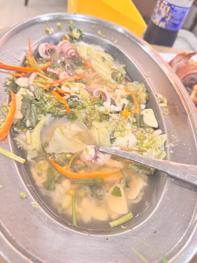 สั่งอาหารมาวันนี้เมนูแรกออส่วนกรอบอร่อยมาก เมนูที่2สั่งหมึกนึ่งมะนาว มีการแอบงงนิดหน่อยกับ เมนูหมึกนึ่งมะนาว มาสภาพที่เห็นตามในรูปเลยค่ะหรืออาจจะเป็นสูตรของทางร้านก็ได้ค่ะแต่สูตรนี้ หลังจากที่ได้ลองทานไปจะคาวมากเลยค่ะ ขาหมูเยอรมันก็มีส่วนที่ทอดไม่สุกบ้าง ส่วนด้านน้ำจิ้มที่นี่ก็จะเป็นน้ำจิ้มคือซอสหวานมายองเนสและซอสมะเขือเทศซึ่งก็แตกต่างจากที่อื่นที่เคยทานมาเพราะที่อื่นจะมีน้ำจิ้มซีฟู้ด และมีซอสหวานหรือน้ำจิ้มเต้าเจี้ยวเรย แอบบงง รีวิวเมนูสุดท้ายคือกุ้งมังกร เราสั่งเป็นเมนูย่างเมนูนี้ออกมาเป็นเมนูสุดท้ายแต่ว่ามันจะมีกลิ่นของแก๊ส มาในเนื้อกุ้งด้วยมันทำให้กินไปแล้วรู้สึกว่าเราทานแก๊สไปด้วย รู้สึกว่ากินแล้วไม่สนิทใจ เพราะมันจะได้กินแก๊สในเนื้อกุ้งในเวลาที่เราเคี้ยวหรือกินมันจะได้กลิ่นตั้งแต่เอามาตั้งที่โต๊ะแล้ว เข้าใจเลยว่าระดับภัตตาคารแต่มันไม่น่าจะผิดพลาดขนาดนี้ และทางร้านไม่ได้ให้ลูกค้าเลือกเลยว่าจะเอาตัวไหนทางร้านเลือกมาให้เอง เรื่องราคาเรา โอเคนะเรารับได้เรื่องของราคาแต่ไม่ได้เรื่องของคุณภาพของรสชาติซึ่งมันไม่เหมาะสมกับราคาที่จ่าย...
