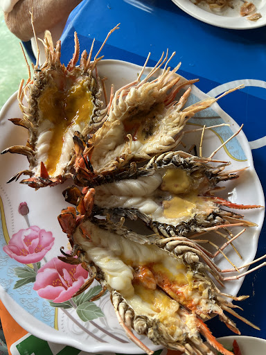 Read moreเจอร้านนี้จากการเสิร์ชในกูเกิ้ล บอกว่าเป็นร้านลับ อร่อยและราคาไม่แพง เลยจัดการโทรจองที่นั่ง คนรับสายพูดจาดี ขับรถตาม GPS ไปเรื่อยๆ หมุดปักถูกต้อง ร้านอยู่ในวัดบางพรม ติดริมน้ำ มีโต๊ะวาง 8-10 โต๊ะ เราไปกินผู้ใหญ่ 4 คน เด็ก 1 คน ดูเมนูแล้วเริ่มสั่งอาหารเลย อาหารรอไม่นาน ทำตามคิว คนมากินเรื่อยๆ ไม่ถึงกับรอคิว กุ้งเผามี 4 ราคาให้เลือก 750.- 900.- 1,000.- 1,200.- วันที่ไปกิน (27 มค 67) ราคา 900.- ไม่มี เราเลยสั่งแบบ 1,000.- ขนาด 6-7 ตัวโล เราสั่งไป 4 ตัว หนักรวมกัน 8 ขีด = 800 บาท กุ้งสด เนื้อเด้ง น้ำจิ้มอร่อย ไม่เผ็ดมาก รสชาติเปรี้ยวหวาน ถูกปากบ้านเรา กุ้งตัวไม่ใหญ่มาก มันไม่ค่อยเยิ้ม แต่ได้ความสด กิรกับข้าวเปล่า จานละ 10.- ฟินอยู่ … มื้อนี้หมดไป 1,520 บาท ราคาและความคิดเห็นอยู่ใต้รูปน้าาาาา ข้อเสีย : แมลงวันเยอะ กินไปต้องเอามือปัดแมลงไปด้วย ไม่แน่ใจเป็นเพราะฤดู...