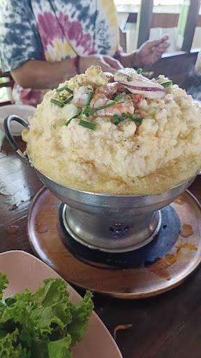 A go to restaurant for predominately Thai's....as a non native you may need support in ordering/navigating the menu. We arrived at peek time on a Saturday and waited about 60mins to be seated and a further 30 min for our food to be served. That be said it was amazing throughout...very fresh and of superb quality. It is located by the river and offers beautiful views......it does get very hot within the seating area but nothing unexpected for the region. A very popular restaurant with people travelling from the capital and around to enjoy....