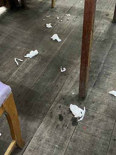 Furthermore, many unoccupied tables were still cluttered with used dishes that were also covered in ants. It seemed like the tables hadn't been cleaned or attended to for a long time.