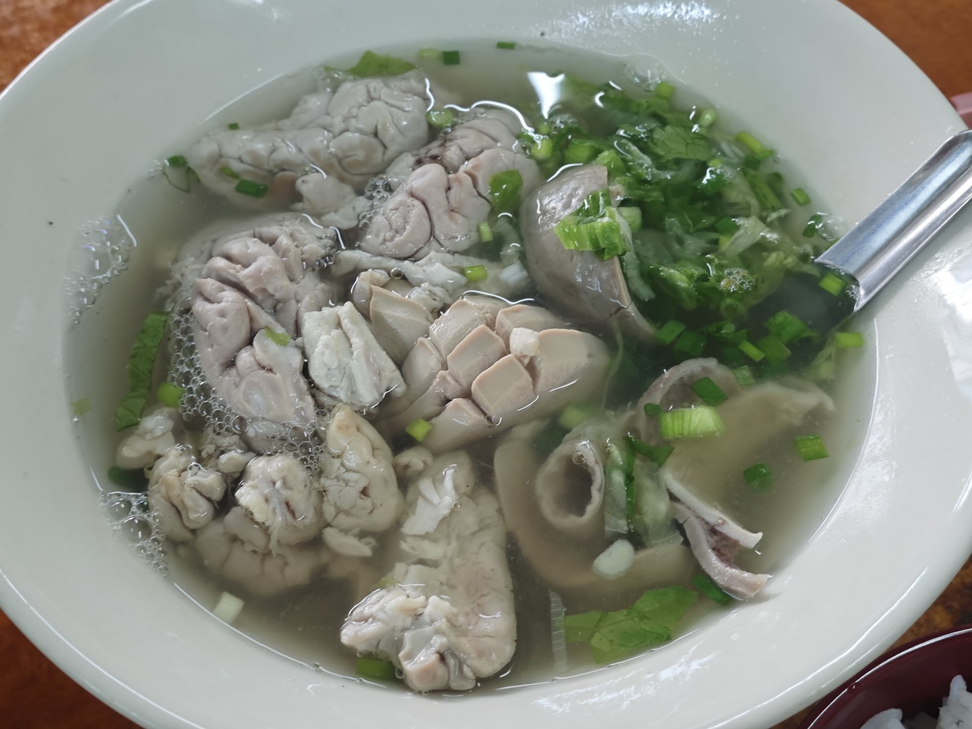 Read moreQuite surprising they use a clear soups, unlike most stall selling pig offal will uses strong pepper or vege pickled soup-bases to hide offal odours tastes. They pig brain dish is not easy available and the offal have to clean very carefully, even so there is still traces of the origin offal taste in it (maybe not like by most people). They have to be respect to keep the their traditional and authentic to prepare it, which is really difficult to find at my hometown and southeast asia chinese Community. Lastly the lady is still in the stall to greet...