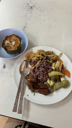 Read moreWe had a nice vegetarian meal. I was expecting more becouse of so many recommendations, they are there since 1983, and they are in every Lonely planet book mentioning Bangkok. So, the guy was very serious and fast, just took the rice and start showing what can we put on without telling us how it actually works- rice + three dishes above. Later we also saw he has brown rice too which we would also prefer. I said I would like noodles so he pour away my rice and put me some dish with noodles and let me to choose more. All that was ok but that feeling that there is some big hurry even we were the only customers I didn't like. Also my dish was all cold. Anyway, the food is good and I would come again to this restaurant, especially now when I know...