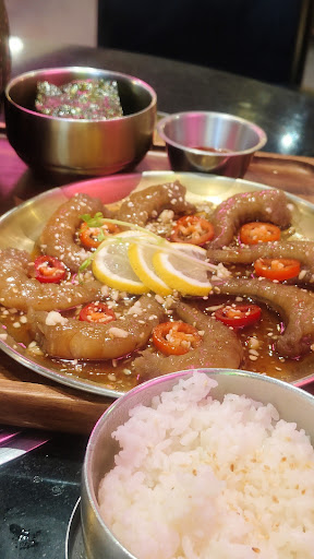 Read moreปิ้งย่างเกาหลีเปิดใหม่ ราคาโปร 699 มีทั้งหมู เนื้อ และบะหมี่เกาหลี (รามยอน) ให้หนึ่งชาม ถือว่าคุ้มค่ามาก ทานสองถึงสามคม อิ่มกำลังดี มีผักสด และเครื่องเคียงเติมได้ตลอด ไม่อั้น ทานของย่างคู่กับผัก และนำ้จิ้ม ที่มีถึงหกชนิด อร่อยใช้ได้เลยครับ น้ำชาจีนร้อนเย็น รีฟิวส์ 39 บาท ชาหอมดี เย็นชื่นใจ นอกจากเมนูที่ทาน ยังมีอีกหลากหลายเมนูให้เลือก ไม่ใช่บุฟเฟ่ห์นะครับ เลือกเป็นเซ็ตๆไป โดยรวมผ่าน ชอบการบริการของน้องๆครับ ดูแลลูกค้าได้ดีมากๆ ขออะไร ถามอะไรใส่ใจดี ตอบดี คะ ขา ค่ะ ไม่มีจ้าให้ได้ยิน เป็นแบบนี้ไปนานๆ จะเข้าไปทานเรื่อยๆถ้ามีโอกาสผ่านไป (ผมให้ดาวคำพูด และความสุภาพเด็กๆเลย 1ดาว ) ที่จะไม่ชอบคือตะเกียบเกาหลีที่เป็นเหล็ก คีบของยาก ลื่นด้วย เข้าใจว่าคงทน และนำกลับมาใช้ใหม่ได้นาน แต่ส่วนตัวผมไม่ชอบเลย จะหลุดมือหลายครั้งมาก ราคาสมเหตุผลครับ มีโอกาสลองไปชิมได้ ทานเอง จ่ายเอง เลยเขียนได้แบบสบายใจ