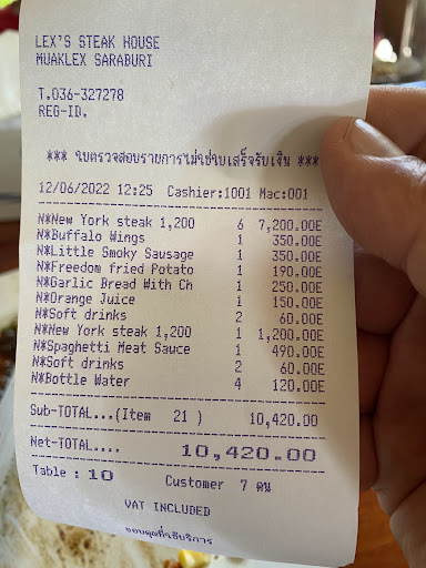 Ridiculous Price! Not worth it Steak looks good but it’s deceptive. Very disappointed. The beef was heavily processed. Texure was so weird. The sauce overpowers everything. We could not taste the beef flavor. Couldn’t finish the steak. Took the leftover for the doggies, they refused to eat it. หมาไม่แดก Charged ฿1,200 per piece which I would happily pay for if the quality is up to steakhouse standard, unfortonately it’s not.