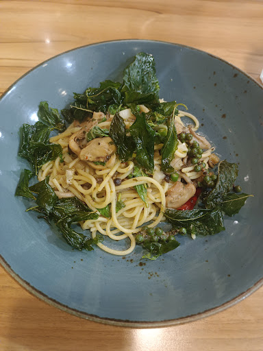 The staff was very patient as we explained in English that we wanted vegetarian food (Jay), but no milk. We were able to order a pasta that was probably vegan (the menu said vegetarian, but it was made with olive oil and got it with no cheese). We wanted to order a second pasta, but the other vegetarian pasta has a cheesy sauce, so we got two of the same pasta. The staff was so friendly and helpful. Definitely recommend...