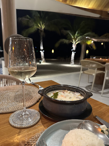 Beautiful romantic spot part of a the irene resort which seems like a stunning property but once I sat down there were so many mosquitos that spoilt the dining experience. Staff was really kind to swat them off for me and offered mosquito spray but there were just too many! In a fancy place like this perhaps more coils or citronella incense would help? Tom kha was good except the squid tasted like it was frozen so it wasn’t worth the price in my opinion.
