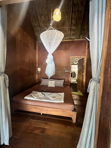 Read moreThis is the first time I have been so traumatized by a stay that I fled the same night. When I hobbled into the facility with my suitcases after the extremely exhausting boat trip, I had to relax first. This was impossible. Because of the bamboo construction, the room felt 10 °C hotter than outside. There was no air conditioning, just a weak fan. You can't dry off after a shower because you're constantly sweating from the heat. After about an hour, I developed heat shock with a migraine. I couldn't even unpack my suitcase because there was no room for it. I was hoping that the room would at least cool down during the night. It didn't. Completely exhausted, I just wanted to sleep. When I wanted to go to bed, mosquitoes and large cockroaches came into the room. I knew then that I had to leave as quickly as possible. I literally booked a new hotel at 10 o'clock at night because I couldn't stand staying in that room any longer. I found the cockroach dead in the bathroom the next day. I think it died from...