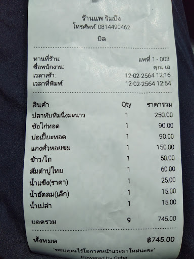 Read moreความสะอาด...มีน้อยมาก โต๊ะมีจุดคราบน้ำหวานเหนียว.. (ทำไมไม่เปลี่ยนโต๊ะ..เพราะลูกอยากนั่งริม)..เมนูมีคราบน้ำยำหรือคราบอาหารแห้งๆ เหนียวๆ ช้อนส้อม ยังมีคราบแกง..ร้านอาหารไม่สะอาดคือตกค่ะ 2.เด็กเสิร์ฟพูดไทยไม่ชัด ทิ้งกระดาษทิชชู่ในน้ำ(บึง) เฉยเลย.. ถามว่า "ข้าว 1 โถ มีปริมาตรเท่ากับกี่จาน" คำตอบคือ "แล้วแต่พี่ตัก"...จบกัน... สรุปสั่งเป็นจานดีกว่านะคะ จานละ 10 บาท โถละ 50 (ปริมาตรประมาณ 3 จานกว่าๆ) อาหารทอดๆ ที่สั่งมาถือว่าใช้ได้ กรอบดี ..ป่อเปี๊ยะทอด แย่เลยพอจิ้มน้ำจิ้ม..น้ำจิ้มแย่มาก กลับทำให้ของทอดที่ดีเลวร้ายได้ แกงคั่วหอยขม ...หาความอร่อยไม่ได้เลย จืดชืด ใกล้จะคาวหอยแล้ว.. ไม่มีรสชาตเครื่องแกง ไม่มีความันของกะทิ มีแต่น้ำมันเครื่องแกง ปลาทับทิมนึ่งมะนาว .. ไม่ใช่แบบนี้.. ต้องแยกต้มยำกะนึ่งมะนาวให้ได้ว่าต่างกันอย่างไร รสชาตยังไม่ได้ค่ะ.. มันไม่ใช่นึ่งมะนาว. ตำไทยปู อันนี้พอได้...