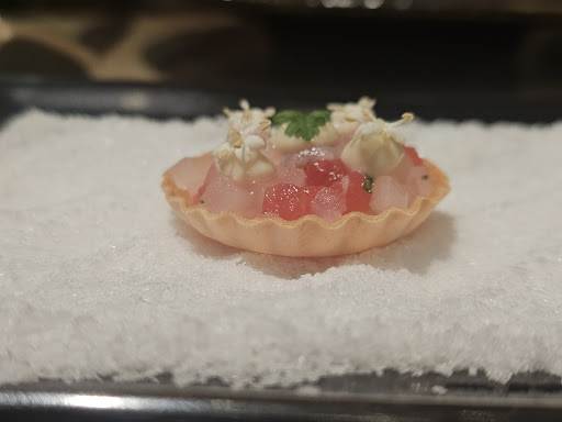 We ordered, and we actually ordered the expensive set with add-ons , so we were genuinely giving this restaurant a proper tasting. We then decided we wanted to order some wine, i then tried to make contact with our server however he looked at us in disgust and then instructed someone else to take our drink orders - which is fine, but again, what have i done to deserve your bad attitude?