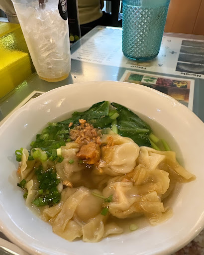 What a cute little eatery this place is and I was going on a walk and I came through this alley and decided to have some soup and I order of course the shrimp dumpling soup which also had some pork in it and some lemon iced tea which was really good. It was a nice hot day in Bangkok and a long walk Took me to this place. I was glad I did come here to have a quick bowl of wonton soup.