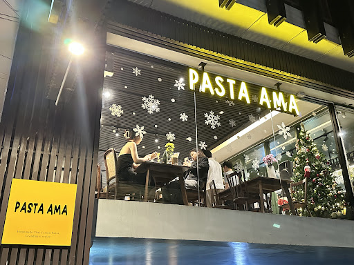 Fancy restaurant with superb food. First time trying Pasta Ama. I ordered multiple dishes and overall the food was great: Spaghetti Sriracha Spicy Carbonara with Crispy Bacon and Onsen Egg: This one was the star of the show. Absolutely delicious! It was a good combination of creamy and little spicy. Recommended! Volcano Scrambled Eggs with Rice: It just felt like an ordinary Pad Kra Pao. It's good but I expected more. It's not that spicy, contrary to its name. Tuna Salad: The vegetables tasted fresh and the tuna was okay. Apple Almond Cheese Cake: Not many variations of cakes were available but this is good, although it's a bit too sweet.
