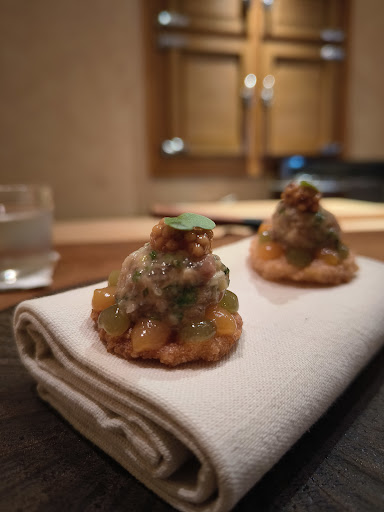 Read moreNew Fillets at One Bangkok. The restaurant decoration is definitely grandure with a large spacious circular bar seating. But after being seated, it's not exactly ideal. You definitely don't have much privacy, the vibe is not intimate like most omakase restaurant. The width of the bar counter is quite deep so it's not very friendly to make conversation with you chef.