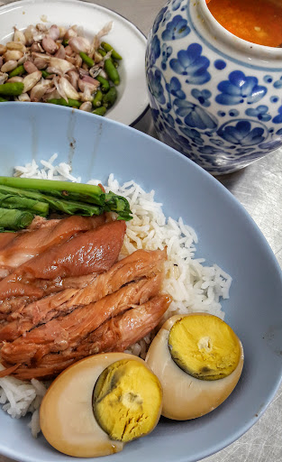 #1 in the whole world. If you want a special treat and your a visitor on vacation. This is a must adventure for the day. The best Pig leg stew ever. The family has been in this same spot for over 70 years. I've been told. This a Hong Kong special style Pork Leg stew. In a sweet sounds broth slow cooked for hours to get this flavor. Star anise, roots and barks. Sugar and OMG. Everytime I'm in Bangkok. I go. Trick to find. One major landmark is The Art Decco style Grand Post Office at the top of the road you can walk down. You will see Jewelry stores and that's the street you walk down. I always take BTS to Saphan Taksin. Get a motorbike to the Post Office and walk down Jewelry store street. Two short blocks and your there. Any further and you've passed it. A big overpass is just after the small restaurant stall. If you go under big over pass. You went to far. Also it is not on Charoen Krung Rd as the Post Office. Look for Jewelry stores. Head down the road. Soi 32 I believe. Enjoy. To go back repeat the same bike ride and BTS. You can also visit River Park Shopping and lots antiques in that area. Thai historical art. Beautiful statues. Bhudda. Home art of Asian style. It's a massive art center. The river is walking distance and all the benefits of the river taxi's. Chinatown up the road. Don't be afraid to take a bus and head up Charoen ed. 10 baht or less. A great area to get lost in and find your way out. A motorbike to Surrisak, Sathorn or Saphan Taksin station is a easy...