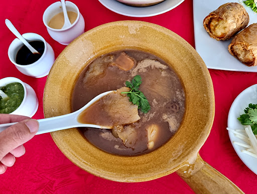Read moreスリウォン・シーロムのエリアで一番のおすすめフカヒレ店は「ピン・フーチャラーム・レストラン(Ping’s Shark’s Fin Restaurant)」 潮州系の中華料理の中でも特にフカヒレが有名なのが、スリウォン通りにある「ピン・フーチャラーム・レストラン(Ping’s Shark’s Fin Restaurant)」でしょう。フーチャラーム(フカヒレ)と店名にあるくらいですので、名物はフカヒレであることは間違いありません。スープがおいしいと人気で、また材料各種も多くがプレミアムクラスの輸入品ばかりです。 この店は3フロアあり、2階3階はVIPルームになっています。広い部屋なのでゆったりとくつろぎながら食事を楽しめるのも魅力。家族での訪問や仕事の集まりでも利用できるようになっています。ただし、VIPルームは事前に予約しておくべきでしょう。そんなピン・フーチャラームの特別メニューのいくつかを紹介していきます。 『フカヒレスープ』(Braised Shark’s Fin with Crabmeat in Claypot)はまさに店名にもあるメインメニューになります。特級のフカヒレを、よくほぐした鶏肉を入れたオリジナルレシピのスープとじっくり煮込むこと6時間以上。スープは白濁してしまっています。スープの具材はほかにアワビ、シイタケ、カニのツメ肉も贅沢に。これを土鍋に入れて供されます。一緒に食べるパクチーやモヤシも。とにかく、ここのフカヒレはバンコクでもトップクラスに濃厚でおいしいということで、すでに有名です。 『シンガポール風カニ炒め』(Curry Crab in Singapore Style)もまたこの店で大人気のメニューのひとつです。ここのマッドクラブは非常に大きく、1杯あたり700グラムから1キロほど。しかも、ジャンタブリー県で獲れる天然ものです。鮮度はもちろんですが、身がよく詰まっていて、味わいも深くなっています。これをカレー粉ベースのシンガポール風ソースで炒めているので、塩味と辛味がちょうどよくなっています。 『ガチョウの足の土鍋蒸し』(Braised Goose Web in Claypot)は実に手の込んだ料理です。中国の香辛料パローを使って、ガチョウの足を6時間も煮込んでいます。これを小麦粉麺のバミーと蒸して完成です。この料理は期待を裏切らないので、ぜひ食べてみてください。ガチョウはポーランドのもので、よく煮込んでいることで肉は柔らかくなっています。もちろんバミーもいいものを選んでいますので、麺もおいしいです。 『魚の浮袋と海老の炒め』(Fried Fish Maw with Prawns)で使用する魚の浮袋はとにかく大きなもの。水で戻す際にしっかり中の余分な脂肪も出しているので、味が濁りません。この浮袋をエビと炒めると、エビの油が浮袋によく浸みこみます。ネギを加えたらチリソースで味を調えることで、浮袋のサクサクした感触が際立ちます。 『アワビとカニ肉のご飯』(Braised Abllone & Crabmeat with Rice)はこの店の隠れた名品。アワビご飯のアワビはメキシコ産を使用しています。香りがよく、肉が柔らかいからです。これをさらに柔らくなるように煮込み、フカヒレスープに似た赤いスープをかけています。カニ肉も大きく、アワビ、カニ、スープ、ご飯が互いのおいしさを引きだし合った逸品に仕上がっています。 『カニ肉の湯葉包み揚げ』(Deep Fried Crab Meat...
