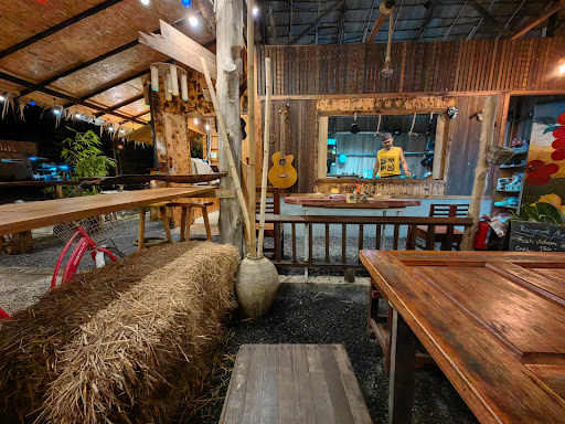 ATMOSPHERE It's a good location, right next to the 7-11 by the fresh market on Srisoonthorn road. The place is made out of wood, decorated with some guitars and has comfortable chairs. They can accommodate parties of all sizes. It's a no nonsense burger spot with few bells and whistles and VERY rustic, but very...