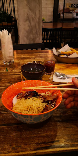 Roast pork condition is above average for general chinese roast porks. I ate 2 dishes, noodle with roast pork and fried spring roll, so will comment on only these two. The noodle was a high quality one. Small size noodle with a little chewy feeling when bite. The roast pork quantity is just enough to be unable to say it is too less. The soft boiled egg is good but you get only half of an egg. The sauce for roast pork was served in a separate cup which is plenty enough for the size of the dish. There were boiled kales under the noodle. The taste... well they were all good ingredients but nothing splendid. The dish served with a clear soup and a very tiny cup of cabbage and bacon salad. All in all it is barely worth the price of 89 THB.