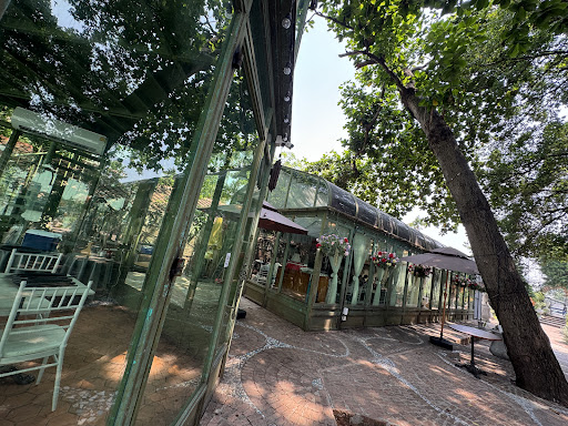 If you had taken the riverboat, maybe you would have noticed this little oasis on the banks of Chao Phraya featuring a towering glass gazebo around the vicinity of Memorial Bridge. The drive to this place is through Somdet Chao Phraya Alley 3 which itself is a very interesting but narrow driveway. It is no tarmac, it is a red tiled road. On the walls of these narrow alleys, one finds several colorful murals just like those seen in Talad Noi not too far away on the opposite bank of the river. We were here one very hot afternoon. They have a sizable parking lot. An archway made of red bricks reminiscence of those historical old forts makes the entrance. The walkway to the shaded seating area was laid with bricks. Just this part of the restaurant already commanded lots of social media postings. Several guests were seated by the river happily enjoying the view. In the middle of the compound there is a large tree. Spiral stairway built around it led to a viewing platform above. The vides given here is the likes of a lovely English Garden (minus the English cool temperature.. . .). We did sit outdoor by the river at first, but I melted like butter. It was either jump into river to cool down or move indoors. So, we moved into the greenhouse. Greenhouse = glass trap heat = the air-conditioning fighting the 40 degrees Celsius and it was a losing battle. I was eating the ice leftover from my orange freezy drink just to cool down. The main building housing the coffee machine and pastries was much cooler, but they only had 3 to 4 tables and there were hoggers there. I guess coming on a normal day instead of a public holiday will be much better. This place not only serves coffee tea and cakes, but they also have a menu of proper meals. They look good, but we just had our lunch. I think coming here in the evening and dining into the night over beer will be divine. Maybe...