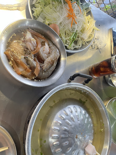 อาหารสะอาด คุ้มค่า รสชาติดี ราคาเซ็ตละ 200.- / 250.- มีกุ้ง หมึก หมู ไก่ เนื้อวัว และชุดผักรวมในราคาดังกล่าว น้ำเปล่า 15.- น้ำแข็งเป็นถัง 20.- ถ่านสามารถเติมได้โดยเรียกพนักงาน