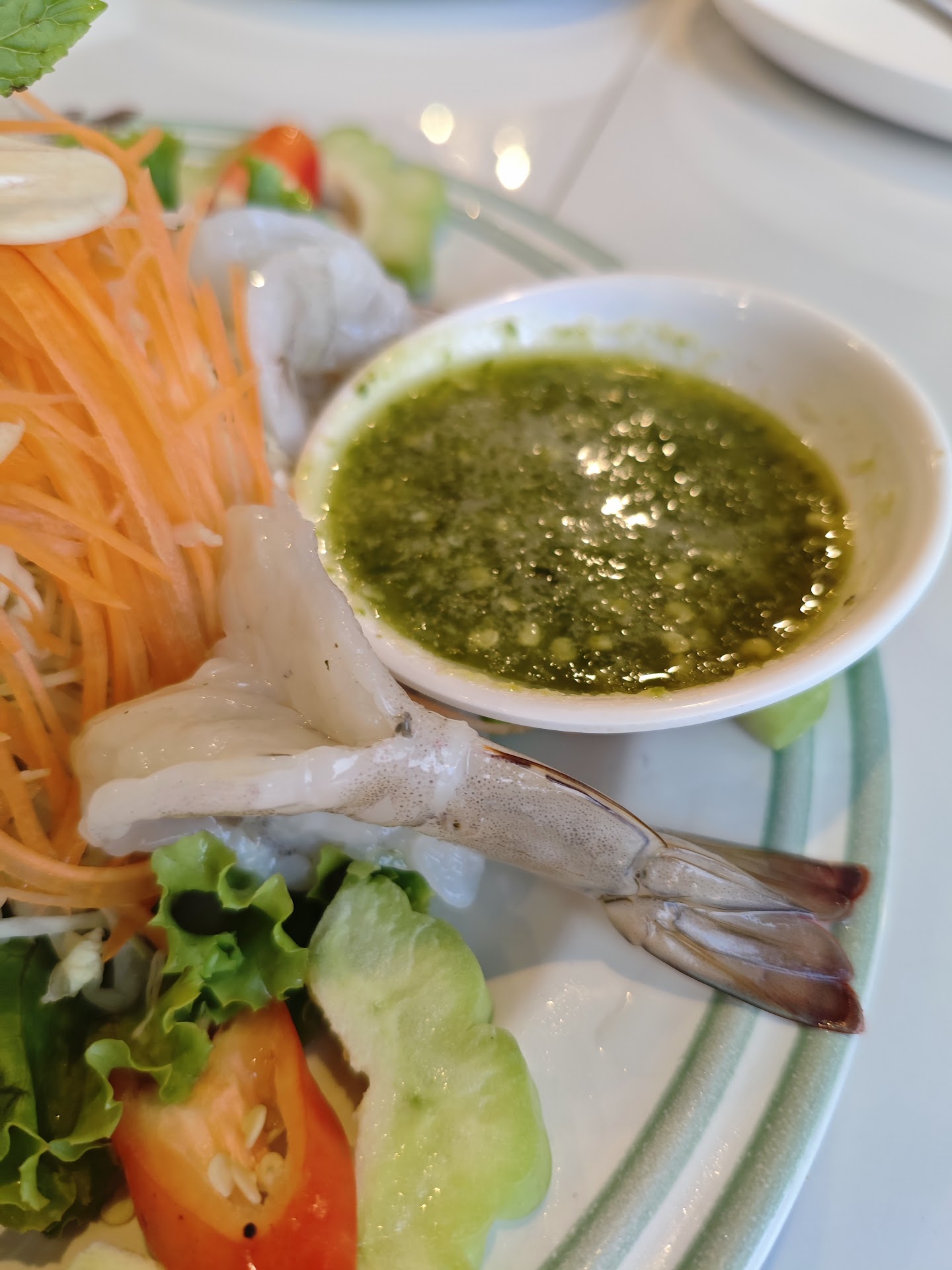 The highlight of the meal was definitely the raw prawns – incredibly fresh with a satisfying crunch and meaty texture. The accompanying green chili paste was a perfect match, adding just the right amount of kick without overpowering the delicate flavor of the prawns.