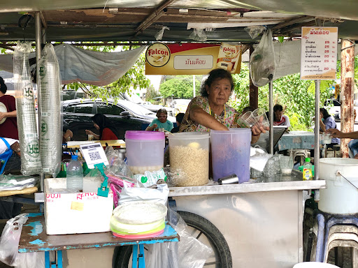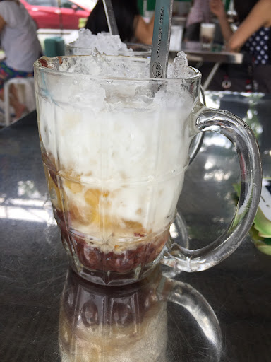 If you’re coming into or out of Hat Yai, this place should be your last stop or your first bite. It’s a streetside cart run by people who’ve been doing this long before anyone thought of writing reviews about dessert. What you get is a glass filled with sweet potatoes, candied pineapple, red beans, millet — all buried in crushed ice and drowned in coconut milk. It’s not cloyingly sweet like so many desserts. And it’s 25 baht — about the price of a bottle of water in Bangkok.