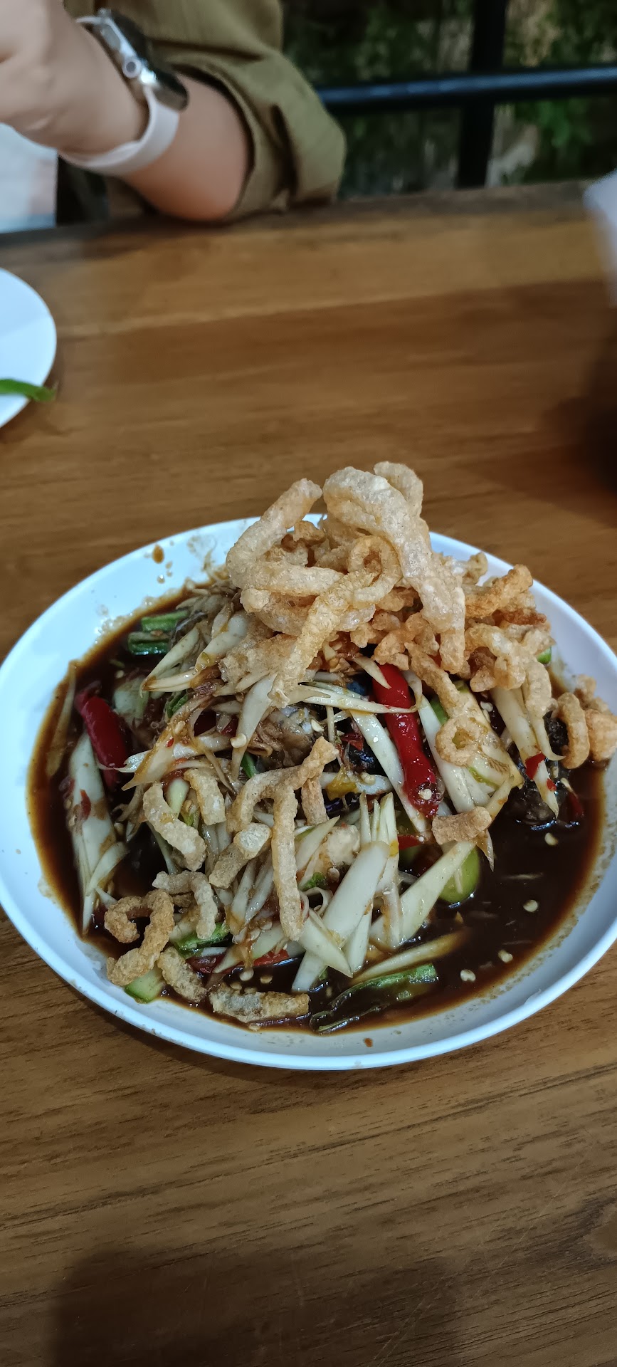 ด้านอาหาร อร่อยบางอย่าง และไม่ถูกปากบางอย่าง (เป็นปกติ) ส้มตำ-ลาบ...คุณจำหน่ายควรจะจัดเสิร์ฟผักเคียงจานเล็กมาด้วย ไม่ว่าลูกค้าจะ ทานหรือไม่ เพราะมันของคู่กัน (เราทานผักค่ะ) อย่าเขียมเลยค่ะ ขายอาหารราคาภัตตาคารขนาดนี้