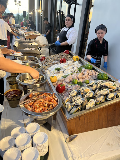 Read moreเรามากินเป็นช่วงโปรโมชั่นวันแม่มาสี่จ่ายสามแม่ได้กินฟรีก็ถือว่าราคาคุ้มค่าค่ะ ในส่วนของอาหารมีให้เลือกหลากหลายแต่ถ้าเป็นอาหารไฮไลท์ที่ทุกคนให้ความสนใจเยอะก็จะต้องรอจังหวะให้พนักงานมาเติมของอาหารไม่ได้มีให้เราได้ตักตลอด ในส่วนของอาหารอื่นๆรสชาติก็ถือว่าพอใช้ได้ค่ะ บรรยากาศในร้านค่อนข้างดีแต่เราได้ที่นั่งไม่ค่อยสวยเพราะดันไปนั่งใกล้กับโซนที่เค้าผัดอาหารมีกลิ่นควันลอยมาตลอดและเสียงดังสำหรับเราคิดว่าไม่ควรไปจัดให้ลูกค้านั่งบริเวณนั้นเพราะทำให้รู้สึกว่าเสียบรรยากาศค่ะและอากาศค่อนข้างร้อนด้วย แต่ถ้าไปช่วงธรรมดาและเราได้นั่งในโซนห้องแอร์หรือโซนริมสระว่ายน้ำฟังดนตรีสดนั่งคุยกันไปเรื่อยแบบชิลล์ๆ...